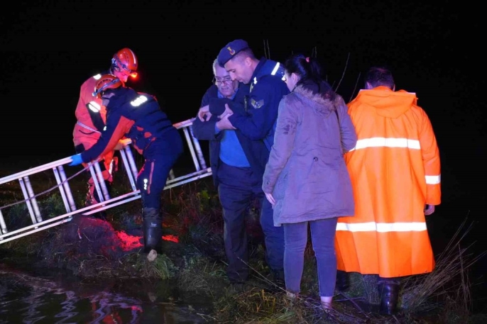 Minibüste bulunan 2 kişi, saniyelerle tahliye edilerek büyük bir felaketten kurtarıldı. Bölgedeki sulama kanalına giren minibüsün yarısının suya gömüldüğü bilgisi üzerine, AFAD, deniz polisi, itfaiye ve sağlık ekipleri olay yerine sevk edildi.
