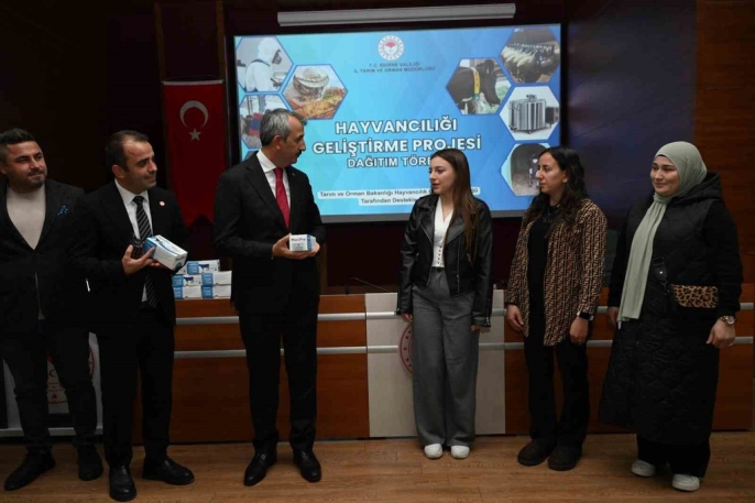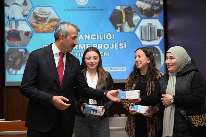 Edirne'de süt üretiminde verimliliği yükseltmek ve hastalıklara erken müdahale etmek için, yüzde 70 Bakanlık hibesiyle alınan 52 adet Mastitis Tespit Cihazı besicilere verildi. Edirne Valisi Yunus Sezer'in katıldığı programda, Tarım İl Müdürlüğü toplantı salonunda cihazların dağıtımı yapıldı. Cihazlar, süt ineklerinde meme iltihabını erken tespit ederek üreticilere avantaj sağlayacak şekilde teslim edildi.