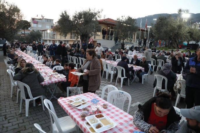 Türkan Saylan Kültür Merkezi’nde gerçekleştirilen iftar programında yüzlerce vatandaş, aynı sofrada buluşarak oruçlarını birlikte açtı. Edremit Belediyesi, sosyal belediyecilik anlayışıyla düzenlediği toplu iftar programları sayesinde Ramazan’ın birlik, beraberlik ve paylaşma ruhunu ilçenin dört bir yanında yaşatıyor. Mahallelerde kurulan iftar sofraları, komşuluk ilişkilerini güçlendirirken her kesimden vatandaşı bir araya getiriyor.