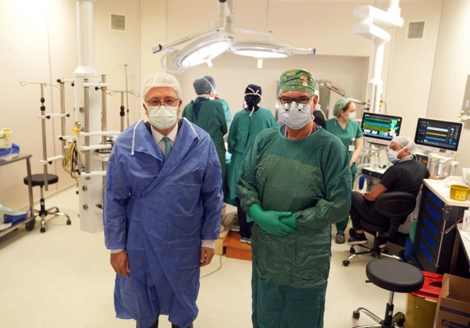 Ege Üniversitesi Rektörü Prof. Dr. Necdet Budak ve Rektör Yardımcısı Prof. Dr. Devrim Bozkurt, merkezi ameliyathaneyi ziyaret ederek, operasyonu gerçekleştiren Prof. Dr. Orkan Ergün'den bilgi aldı. Rektör Budak, Türkiye'nin uluslararası referans merkezi olan Tıp Fakültesi Hastanesinde yeni ameliyathanenin hizmete girdiğini ve vatandaşlara daha kaliteli sağlık hizmeti sunmayı hedeflediklerini belirtti. Modern altyapı ve son teknoloji cihazlarla donatılan merkezde, yenidoğandan yetişkine her yaş grubuna yönelik hizmet verilecek.