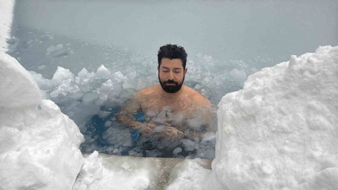 Kış turizminin önemli merkezlerinden Bolu'da tatilini geçiren Eren Biri, kaldığı otelin bahçesindeki buz tutmuş havuza aldırış etmeden suya girdi. Kendisi için ilk anda zorlayıcı olsa da bu tür soğuk su banyolarının sağlık açısından faydalı olduğunu belirten Biri, deneyimini paylaştı.