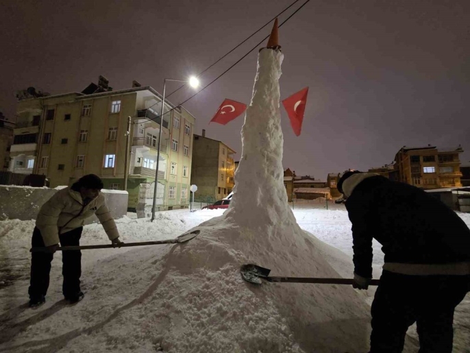 Beytullah Gezer, kardan adamı yaparken kar, kömür, duba ve bayrak kullandıklarını belirterek, "Ekip çalışmasıyla yaptık. Yaklaşık 4,5 metre oldu. Keyifle yaptık. Vatandaşlar yanımıza gelip 'Nasıl yaptınız, çok uzun olmuş' diyor. Bir saat içerisinde tamamladık. Gerçekten mükemmel bir iş çıkardık" dedi. Bu süreçteki heyecan ve mutluluklarını vurguladı.