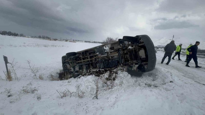 Elazığ'da kar yağışı minibüsü şarampole gönderdi: 9 kişi yaralandı