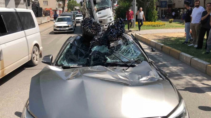 Elazığ'da korkunç kaza: Tonlarca demir, lüks otomobilin üstüne düştü