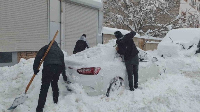 Van'ın Erciş ilçesinde üç gündür devam eden yoğun kar yağışı, ilçe merkezini ve çevresini adeta beyaza bürüdü. Meteoroloji'nin uyarılarının ardından başlayan kar yağışı, hayatı olumsuz etkileyerek ulaşımı durma noktasına getirdi. İlçe merkezinde kar kalınlığı 70 santimetreyi geçerken, yüksek kesimlerde bu rakam 1,5 metreye kadar ulaştı.