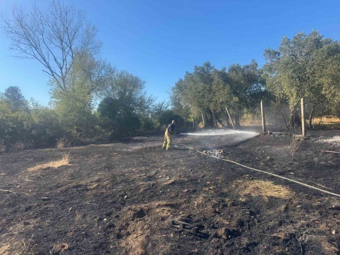 Soğutma çalışmalarının ardından yangın tamamen söndürülürken, çok sayıda zeytin ağacının ve bir otomobilin zarar gördüğü belirtildi.