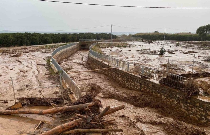 Erdemli'de sel felaketi: Yüksek kesimlerden gelen yağmur köprüyü yıktı, tarım arazileri sular altında kaldı
