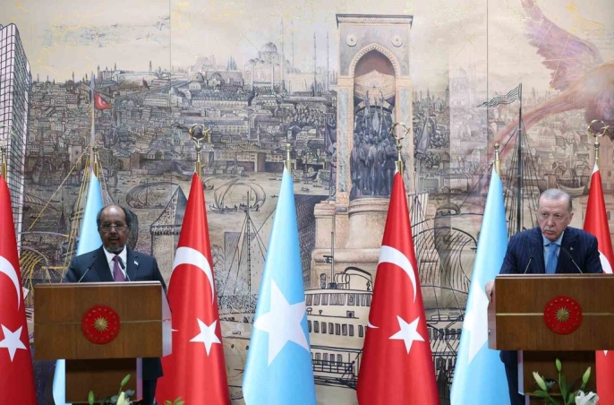 Dolmabahçe Çalışma Ofisi'nde gerçekleşen görüşmenin ardından açıklamalarda bulunan Erdoğan, Türkiye ile Somali arasındaki köklü tarihi, beşeri ve kültürel bağlara vurgu yaptı. 2026'da diplomatik ilişkilerin 60. yıl dönümünün idrak edileceğini belirten Erdoğan, Somali'nin güvenlik ve istikrarına verilen desteğin süreceğini ifade etti. 2011'deki kuraklık felaketi sonrası başlatılan insani yardım kampanyasının iki ülke arasındaki kardeşlik bağlarını pekiştirdiğini hatırlatan Erdoğan, "Tüm dünyanın Somali’den ümidi kestiği bir dönemde Türkiye tarafından uzatılan dostluk eli iki ülke arasındaki kardeşlik duygularının pekişmesine vesile oldu. Aradan geçen süre zarfında Somali, eşine az rastlanır bir ilerleme kaydetti" diye konuştu. Somali'nin yeniden ayağa kalkmasını istemeyenlere rağmen güvenlik alanında ciddi bir iyileşme sağlandığını ve Türkiye'nin terörle mücadeleye kapsamlı desteğini sürdürdüğünü belirtti. Ayrıca, Oruç Reis Sismik Araştırma Gemisi'nin Somali deniz alanlarında yürüttüğü araştırma faaliyetlerinin ülke tarihinde bir ilke imza attığını ve 2026'da sondaj faaliyetlerine başlanmasının planlandığını sözlerine ekledi.