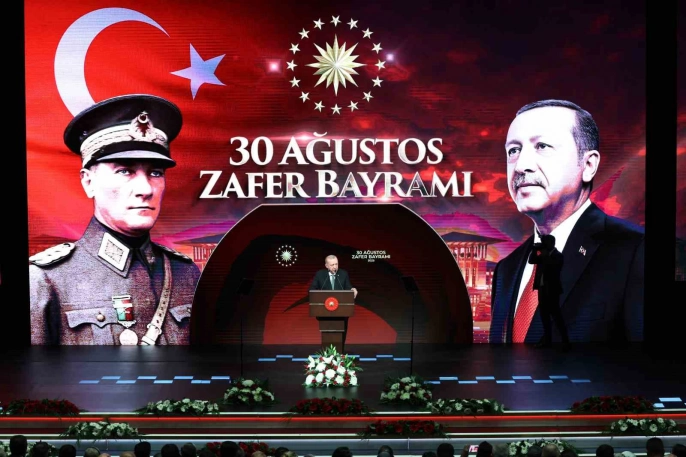 Erdoğan, 30 Ağustos 1922'deki zaferin, İstiklal Harbi'nin en kritik noktasında elde edildiğini ve ordunun ve milletin özgüvenini tazelediğini söyledi. İşgal ordularının bozguna uğratılmasının, bağımsızlık iradesinin ve ebedi varlığın tescili olduğunu vurgulayan Cumhurbaşkanı, 1071'deki Malazgirt zaferinden bugüne uzanan zafer yürüyüşünün devam edeceğini belirtti. 'Türkiye Yüzyılı' hedefine ulaşmak için çalışacaklarını ifade eden Erdoğan, Gazi Mustafa Kemal Atatürk ve İstiklal Harbi kahramanlarını andı, şehit ve gazileri yad etti.