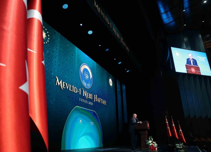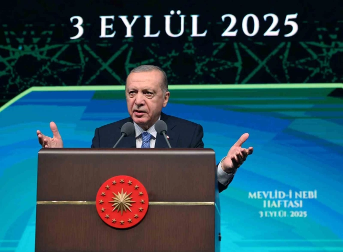 Cumhurbaşkanı Recep Tayyip Erdoğan, Mevlid-i Nebi Haftası Açılış Programı’nda yaptığı konuşmada, Filistin'deki durumu değerlendirdi. Erdoğan, 'Şu anda Filistin’de olan bütün bu, Netanyahu denilen gaddarın, kafirin o kıyamına asla seyirci kalamayız' dedi. Konuşmasında İslam dünyasının kanayan yaralarına da değinen Erdoğan, Gazze, Filistin, Yemen, Sudan ve Afganistan'daki durumdan duyduğu endişeyi dile getirdi.