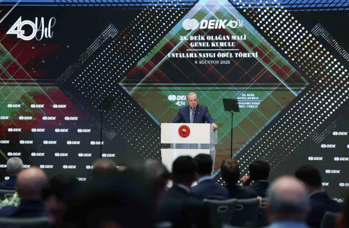 Cumhurbaşkanı Recep Tayyip Erdoğan, Dış Ekonomik İlişkiler Kurulu (DEİK) 38. Olağan Mali Genel Kurulu ve Ustalara Saygı Ödül Töreni Programı’nda önemli açıklamalar yaptı. Erdoğan, Türkiye'nin ekonomik ve siyasi gücünü vurgulayarak, ülkenin barış süreçlerinde önemli bir aktör haline geldiğini belirtti.