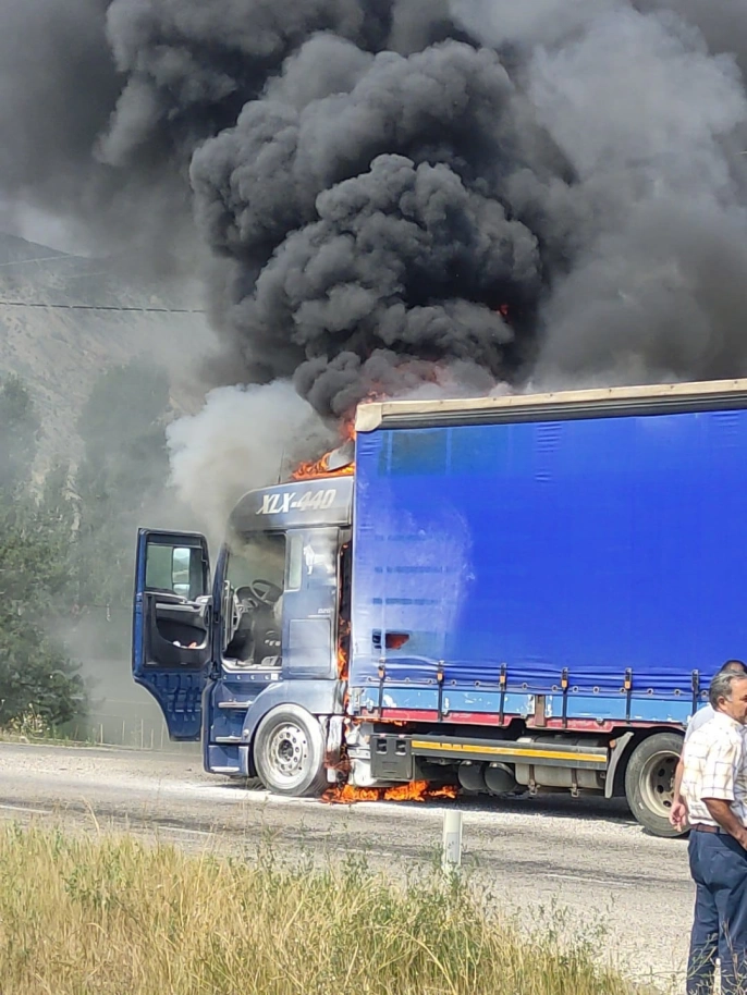 Erzurum'un Uzundere ilçesinde, Erzurum-Artvin karayolunda seyir halinde olan Gürcü plakalı bir tırda henüz belirlenemeyen bir nedenle yangın çıktı. Çevredeki vatandaşlar ve yoldan geçen sürücüler, yangına kendi imkanlarıyla müdahale etmeye çalışarak yangın tüpleriyle destek verdiler.