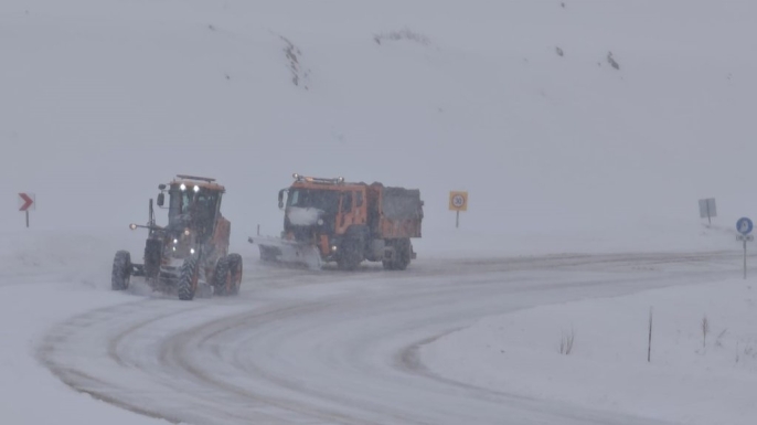 Erzurum'da kar fırtınası: Karayolları ekipleri gece boyu seferber