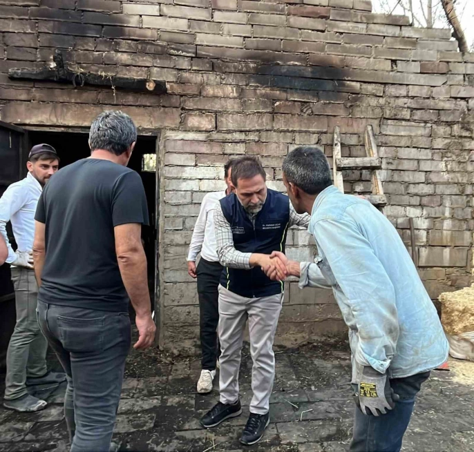 Erzurum'un Yakutiye ilçesine bağlı Kırmızıtaş Köyü'nde çıkan yangın sonrası Yakutiye Belediye Başkanı Mahmut Uçar, bölgeye giderek incelemelerde bulundu ve destek sözü verdi.