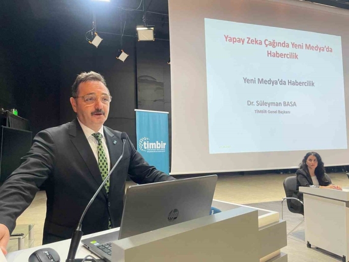 Panelin ilk oturumunda TİMBİR Genel Başkanı Dr. Süleyman Basa, "Yeni Medyada Habercilik" başlıklı konuşmasında dijital çağda gazeteciliğin temel değerlerinin yeniden inşa edilmesi gerektiğini vurguladı. Basa, hız uğruna doğruluğun feda edilmemesi gerektiğini belirterek, "Dijital dünyada kaybedilen güveni geri kazanmak çok zordur." dedi. Basa, yapay zekânın haberi derleyebileceğini ancak insan vicdanı olmadan gerçek gazeteciliğin mümkün olmayacağını ifade etti. TİMBİRin amacının medya çalışanlarını teknolojiyle buluştururken haberciliğin insani yönünü korumak olduğunu belirten Basa, "Geleceğin medyası, teknolojik zekâ ile insan vicdanının birleştiği noktada yükselecektir." sözleriyle konuşmasını tamamladı. Panel, "Yeni Medyada Habercilik", "Hukuki ve Etik Açıdan Yapay Zekâ Haberciliği", "Yeni Medya Haberciliğinde Dezenformasyon" ve "Gazeteciliğin Dönüşümü: Yapay Zekâ ve Algoritmik Gazetecilik" gibi başlıklarda sunumlarla devam etti. Prof. Dr. Raci Taşçıoğlunun moderatörlüğünde gerçekleşen panele TİMBİR Genel Başkan Yardımcısı Cüneyt Altıparmak, Doç. Dr. Aslı Köseoğlu ve Doç. Dr. İbrahim Zinderen gibi isimler katıldı. Etkinlik, plaket takdimi ve toplu fotoğraf çekimiyle sona erdi.