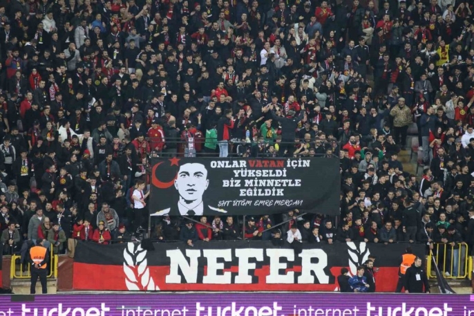 Pankartta, "Onlar vatan için yükseldi, biz minnetle eğildik" yazısı ve şehit Emre Mercan'ın fotoğrafı yer aldı. Bu anlamlı hareket, statta bulunan diğer taraftarlardan da büyük takdir topladı ve maç öncesinde tribünlerde duygusal bir atmosfer oluştu.
