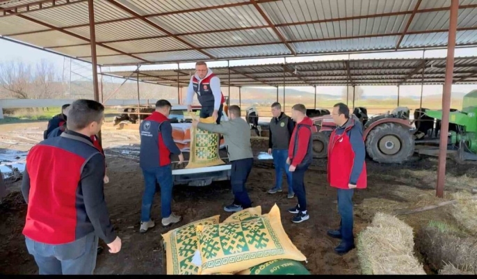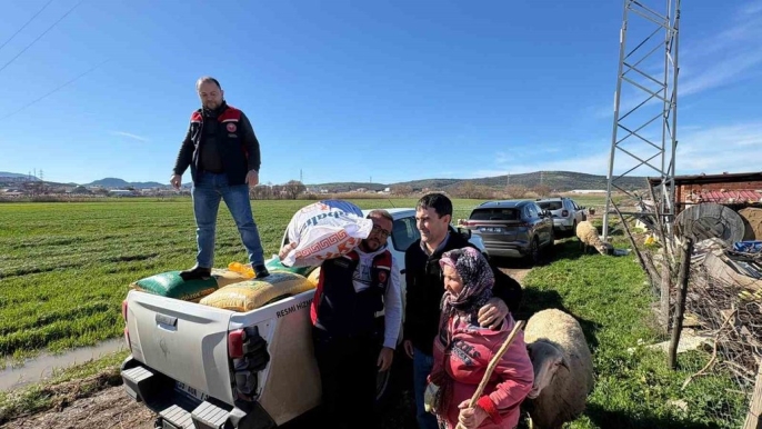 Ezine'de taşkından etkilenen üreticilere yem desteği gönderildi