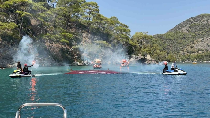 Fethiye’nin Ölüdeniz Mahallesi’ndeki Beach Of Lagoon’da 30 Ağustos Zafer Bayramı kutlamaları büyük bir coşkuyla gerçekleştirildi. Denizdeki ve plajdaki tatilciler, kahramanlık türkülerine eşlik etti. Kumburnu Beach Of Lagoon Müdürü Burak Ardahan, kutlamalar hakkında yaptığı açıklamada, 'Türk bayrağımızı denizde, havada ve karada dalgalandırmanın gururunu yaşıyoruz' dedi.