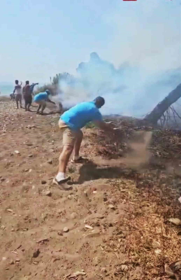 Fethiye’nin Karaot Aymaz sahilinde, sığla ormanıyla çevrili bir alanda çıkan orman yangını, yerel halkın ve tatilcilerin özverili çalışmalarıyla kontrol altına alındı. İki gün önce başlayan yangına, tatilciler ilk müdahaleyi elleriyle toprak atarak yaparken, ihbarın ardından Muğla Orman Bölge Müdürlüğü’nün Fethiye İşletme Müdürlüğü ekipleri olay yerine sevk edildi.