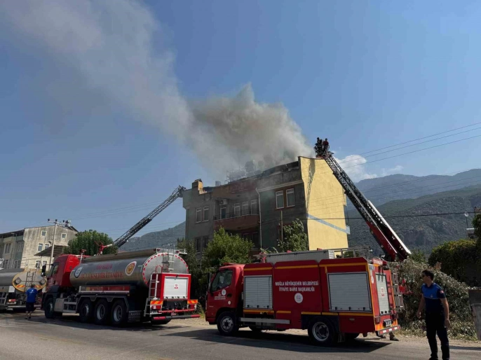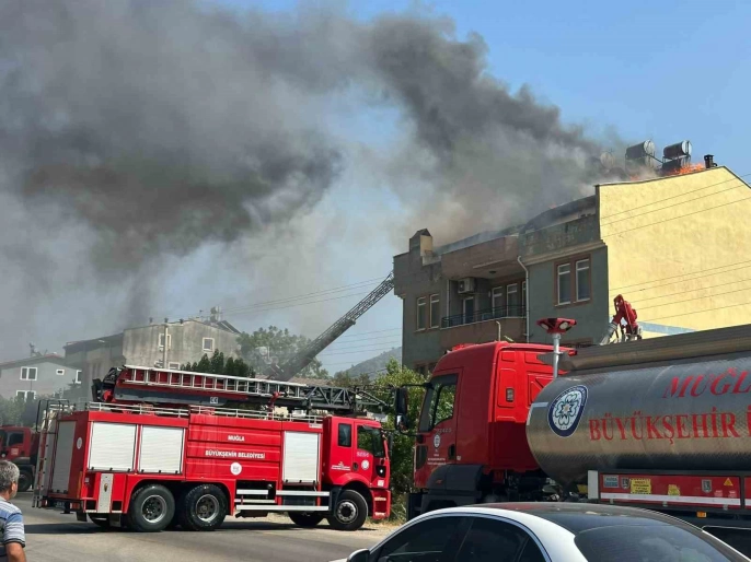 Fethiye'de yangın: Çatı katı kullanılamaz hale geldi