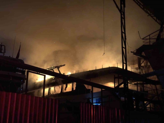 Muğla'nın Fethiye ilçesindeki bir tersanede çıkan yangın, kısa sürede büyüyerek paniğe neden oldu. Söndürme çalışmaları havadan ve karadan yoğun bir şekilde devam ediyor.