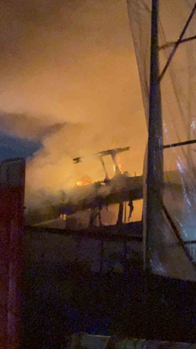 Fethiye tersanesinde korkutan yangın! Ahşap tekne alevlere teslim oldu, ekipler seferber