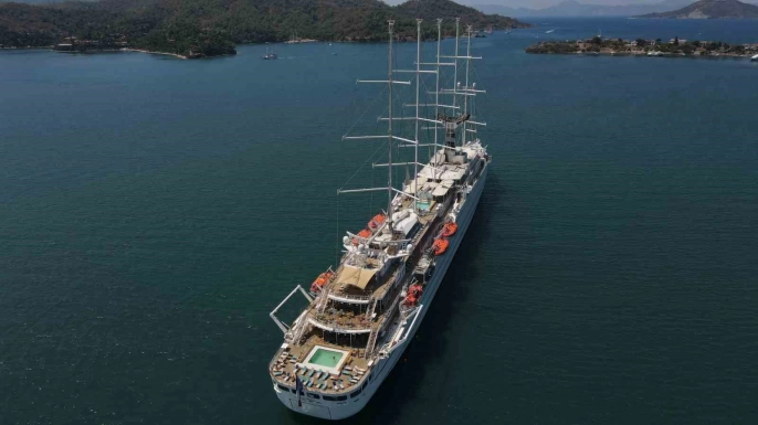 Dünyanın en büyük yelkenli yolcu gemilerinden Club Med 2, Muğla’nın Fethiye ilçesine ulaştı. Geminin büyüklüğü nedeniyle limana yanaşamaması üzerine, 283 turist botlarla karaya çıkarıldı.