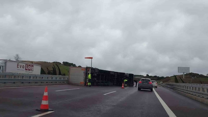 Fırtına otobanda tırı devirdi, sürücü mucizevi şekilde kurtuldu
