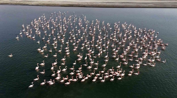 Flamingolar Van'ın saklı cenneti Erçek Gölü'nde daha uzun süre kalacak!