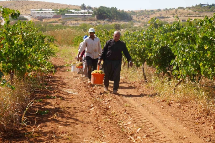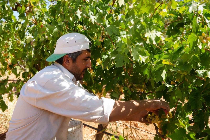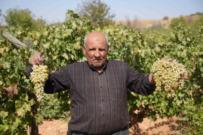 Gaziantep'te tarımsal üretimde fıstık ve zeytinin yanı sıra önemli bir yere sahip olan üzüm, modern üretim teknikleriyle daha kazançlı hale geliyor. Özellikle İslahiye bölgesi başta olmak üzere bağcılık alanında önemli bir merkez olan kentte, telli terbiye sistemiyle oluşturulan örnek bahçeler, üretimde verimlilik ve kalite artışı sağlıyor. Bu doğrultuda, geleneksel yöntemlerle üretilen üzüm bağlarını daha verimli hale getirmek ve üzüm üretimini artırmak amacıyla çiftçi Metin Ok ve oğlu Yakup Ok, Şehitkamil ilçesinin kırsal Bedirkent Mahallesi'nde 12 dekarlık bahçelerine telli sistem kurarak alternatif üretime yöneldi.