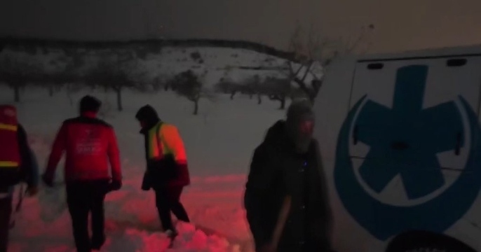 Yoğun kar yağışı nedeniyle araçları kara saplanan UMKE, geriye kalan yolu yürüyerek aşarak vakaya ulaştı. Ekipler, ilk müdahaleyi gerçekleştirerek rahatsızlanan vatandaşı sedye ile UMKE aracına taşıdı ve hastaneye kaldırdı.