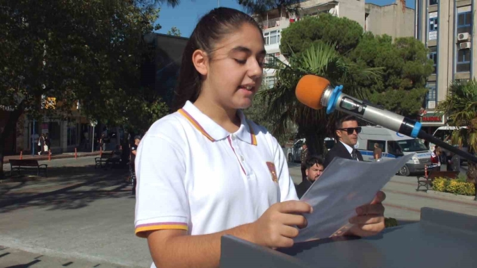 Türkiye Muharip Gaziler Derneği Balıkesir Şubesi üyesi Kıbrıs Gazisi Nurettin Çınar, günün anlam ve önemini belirten bir konuşma yaptı. Kaymakamlık, Garnizon Komutanlığı ve Belediye Başkanlığı çelenklerini anıta bıraktıktan sonra saygı duruşunda bulunuldu ve İstiklal Marşı okundu. Özel Uğur Ortaokulu 7. sınıf öğrencisi Nil Dolgun da bir şiir okudu.