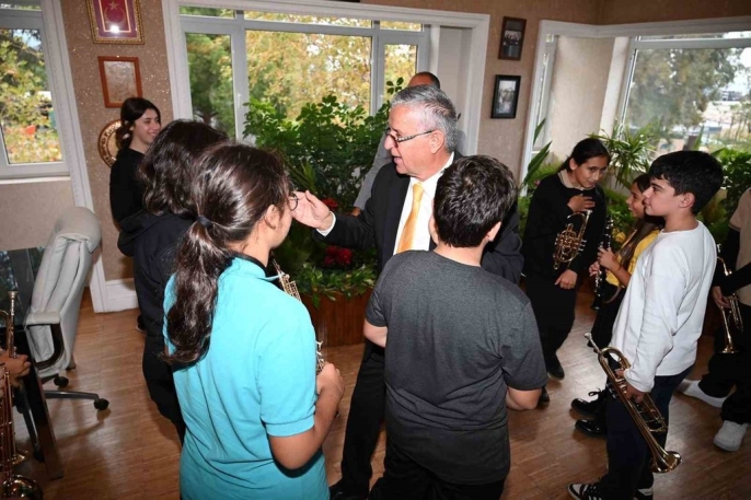 Öğrenciler, başkanlık makamına ellerindeki enstrümanlarla İzmir Marşı'nı çalarak çıkarak büyük bir sürpriz gerçekleştirdiler. Geleceğin müzisyenleri, kapıda Başkan Topaloğlu tarafından karşılandı ve bu anlarda duygusal anlar yaşandı. Başkan Topaloğlu, öğrencilerle tek tek selamlaşarak onlara olan desteğini ifade etti.