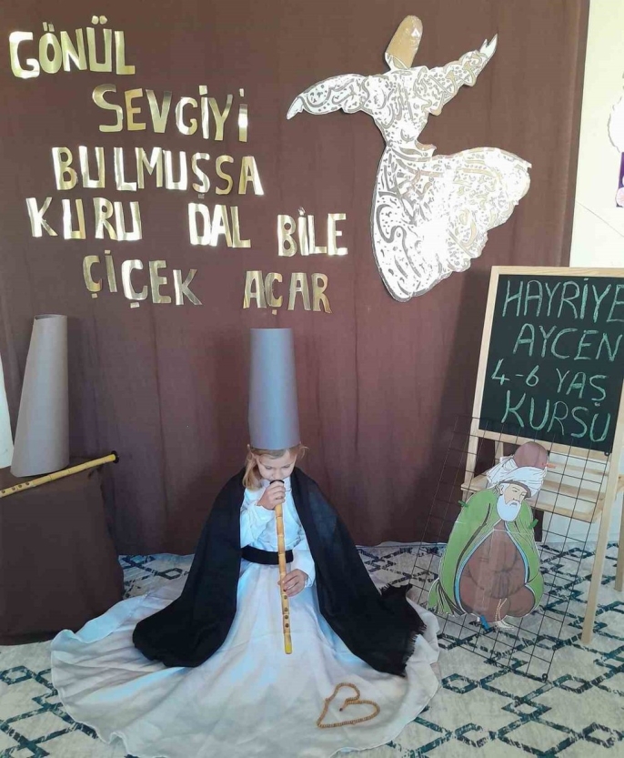 Aydın'ın Germencik ilçesinde, Hayriye Aycen 4-6 Yaş Kur'an Kursu'nda Mevlana Celaleddin-i Rumi'yi anmak ve anlamak amacıyla 'Mevlana Haftası' etkinliği gerçekleştirildi. Etkinlikte, Mevlana'nın sevgi, dostluk, hoşgörü ve paylaşım gibi evrensel değerleri, çocukların anlayabileceği bir dille aktarıldı.