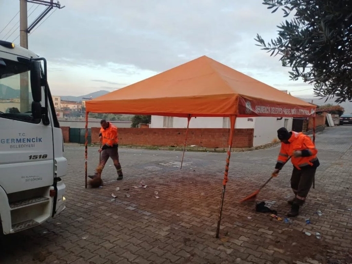 Aydın'ın Germencik ilçesinde belediye temizlik ekipleri, rutin çalışmalarının yanı sıra ilçede düzenlenen cemiyetlerin ardından da kapsamlı temizlik operasyonları gerçekleştiriyor.