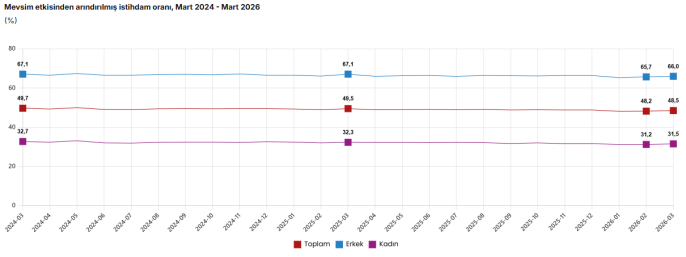 15-24 yaş grubundaki gençlerin işsizlik oranı, mart ayında bir önceki aya göre 0,5 puan azalarak yüzde 15,3 oldu. Bu yaş grubunda işsizlik oranı erkeklerde yüzde 12,8, kadınlarda ise yüzde 20,4 olarak hesaplandı. Genç işsizliğindeki bu oran, Türkiye'nin geleceği açısından endişe verici bir tablo çiziyor. İstihdam edilenlerin sayısı ise 2026 yılı mart ayında bir önceki aya göre 226 bin kişi artarak 32 milyon 425 bin kişi olarak kaydedildi. Ancak istihdam oranı erkeklerde yüzde 66,0, kadınlarda ise sadece yüzde 31,5 olarak gerçekleşti. Bu durum, iş gücü pazarındaki cinsiyet eşitsizliğini bir kez daha gözler önüne seriyor.