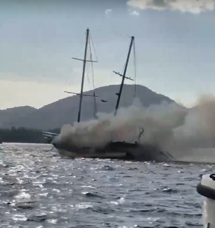 Göcek açıklarında gulet teknede yangın: Tekne kullanılamaz hale geldi