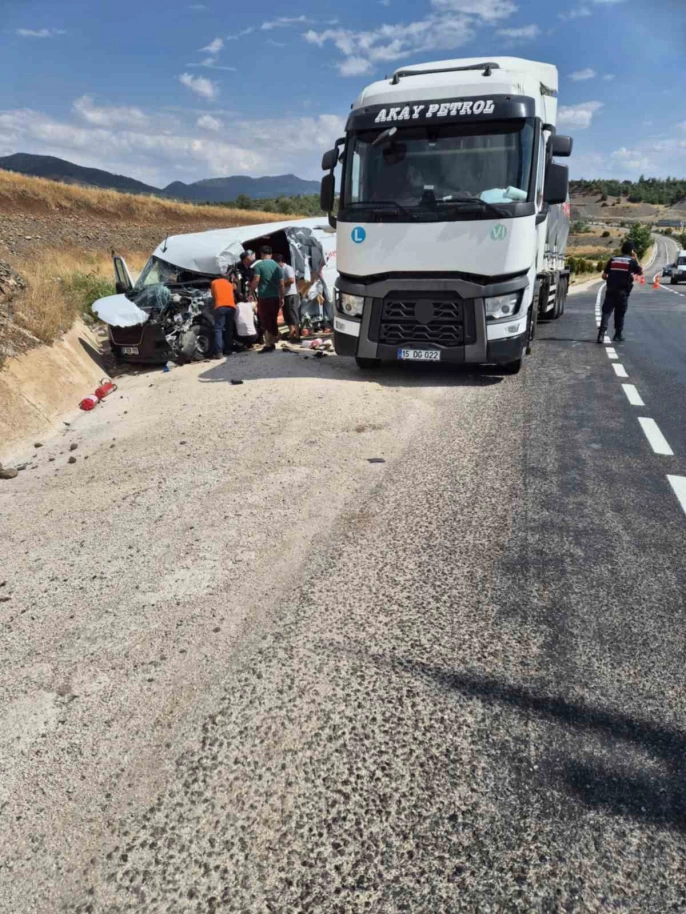 Gölhisar'da kaza: Süt tankerine çarpan araçta yaralı var