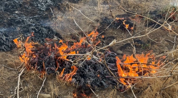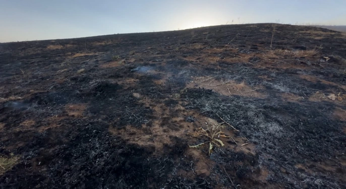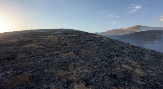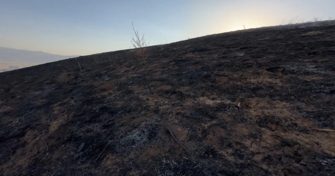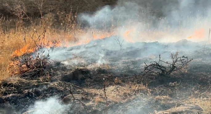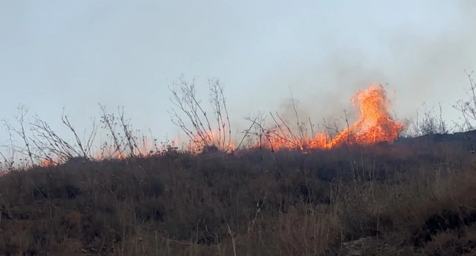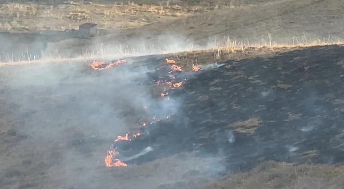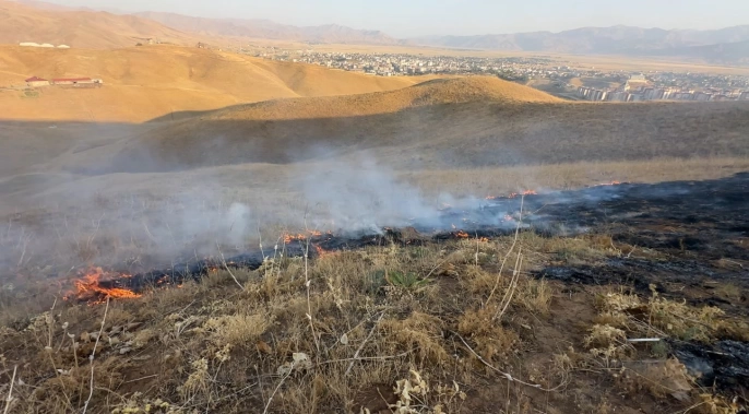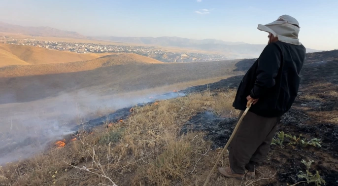 Hakkari'nin Yüksekova ilçesinde öğle saatlerinde başlayan anız yangını, rüzgarın etkisiyle hızla yayılıyor. Yaklaşık 5 saattir devam eden kontrol altına alma çalışmaları, itfaiye ekipleri ve bölge halkının ortak mücadelesine rağmen henüz sonuç vermedi.