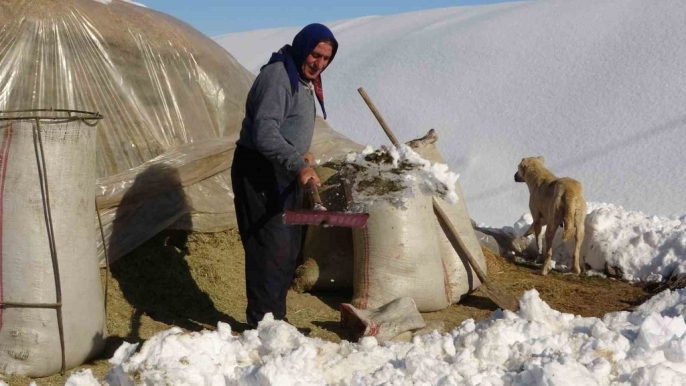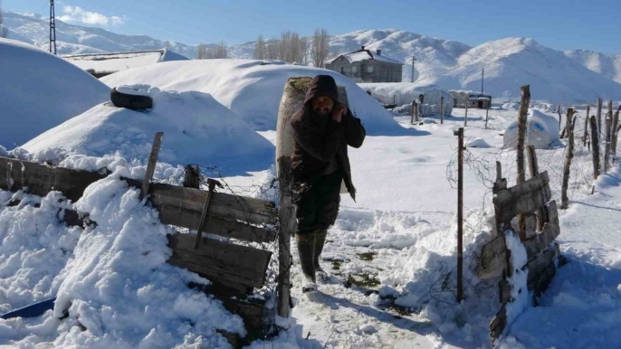 Muş'un Hasköy ilçesinde gece saatlerinde etkili olan kar yağışı, birçok köy yolunun ulaşıma kapanmasına neden oldu. Kış şartlarının ağırlığıyla birlikte besicilerin zorlu mesaisi de başladı.