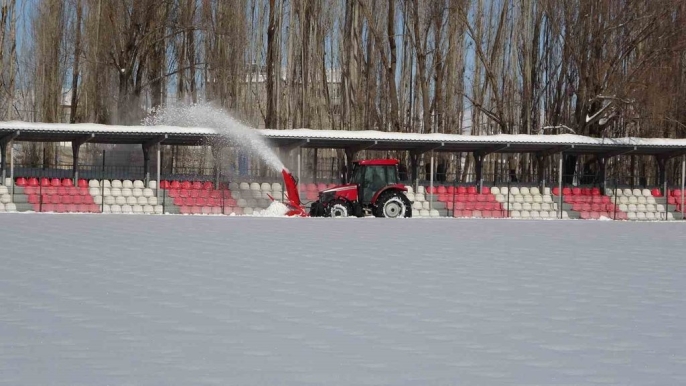 Hasköy'de kar fırtınasına rağmen maç için seferberlik: Saha kardan arındırılıyor