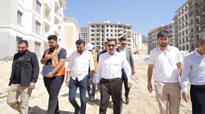 Hatay Valisi Mustafa Masatlı, Alahan Mahallesi ve Serinyol Mahallesi'nde devam eden afet konutlarını yerinde inceleyerek yetkililerden bilgi aldı. Vali Masatlı, projelerin son durumunu yakından takip ediyor ve inşaat çalışmalarının hızla ilerlemesini sağlamak için gerekli adımları atıyor.