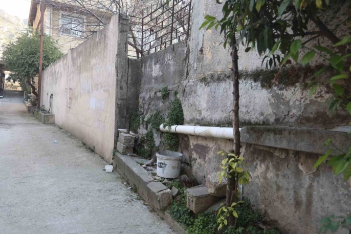 Hatay'da anne ve çocuk, duvardaki telefonu çalarken kameraya yakalandı