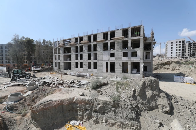 Hatay'da depremin ardından hasar gören kamu binalarının yeniden inşası devam ediyor. Defne ilçesindeki ilçe jandarma komutanlığı hizmet binası, lojman ve sosyal tesislerin yapım çalışmaları sürüyor.