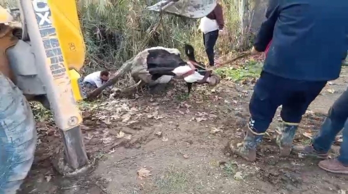 Hatay'ın Kırıkhan ilçesinde, otlarken dengesini kaybederek dereye düşen bir inek, itfaiye ekiplerinin fedakar çalışmalarıyla kurtarılarak sahibine sağ salim teslim edildi.