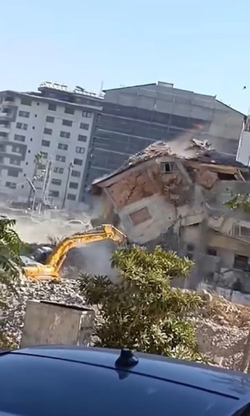 Yıkım işini gerçekleştiren Azad Gökalp, iş makinesinin boomunun binanın altında kalmaktan kıl payı kurtulduğunu belirtti. Gökalp, '5 katlı binayı ekskavatör yardımıyla güvenli bir şekilde yıktık. Yıkımı yapan operatör, iş makinesinin boomunu son anda kurtarmayı başardı. Güzel bir yıkım yapıldı. O makine binanın altından kalmaktan zor kurtuldu. Operatörde sorun olmadı. Binanın tamamı düşerken operatör boomu sağ tarafa çekerek iş makinesini kurtardı' dedi.