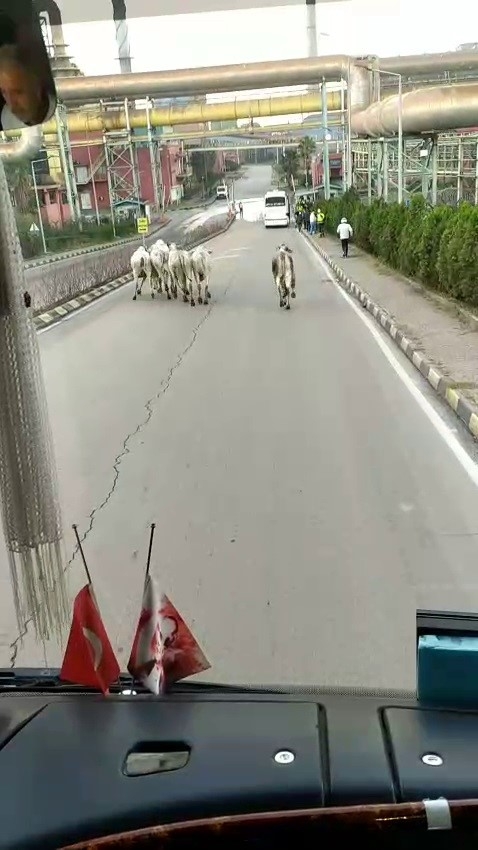 Hatay'da kaza yapan tırdan kaçan anguslar şehirde dolaşıyor