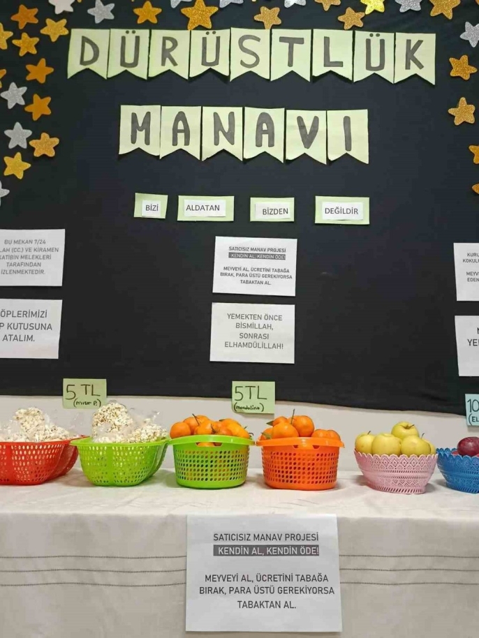 Öğrenciler, fiyat etiketi olan ürünleri seçtikten sonra ödemelerini marketin yanındaki özel bir kutuya bırakıyor. Eğer bir ürün için para üstü gerekiyorsa, yine aynı kutudan kendi para üstlerini alabiliyorlar. Okul Müdürü İsmail Aydın, bu uygulamanın hayata geçirilmeden önce öğrencilere detaylı bir bilgilendirme yapıldığını ve ilgili videoların izletildiğini belirtti. Aydın, "Bir hafta sürecek olan bu dürüstlük marketi uygulamasıyla öğrencilerimiz, dürüstlük kavramını yaparak ve yaşayarak öğrenme fırsatı buluyor. Ürünler eksildikçe yenileniyor ve bu etkinlik tamamen kar amacı gütmeden gerçekleştiriliyor." dedi.