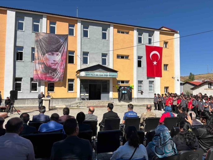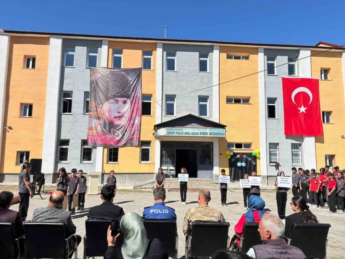 Şehit Polis Anıl Kaan Aybek Ortaokulu’nda gerçekleştirilen program, saygı duruşu ve İstiklal Marşı’nın okunmasıyla başladı. Okul Müdürü Cengiz Çiçek’in konuşmasının ardından öğrenciler şiirler okudu ve çeşitli gösteriler sundu.