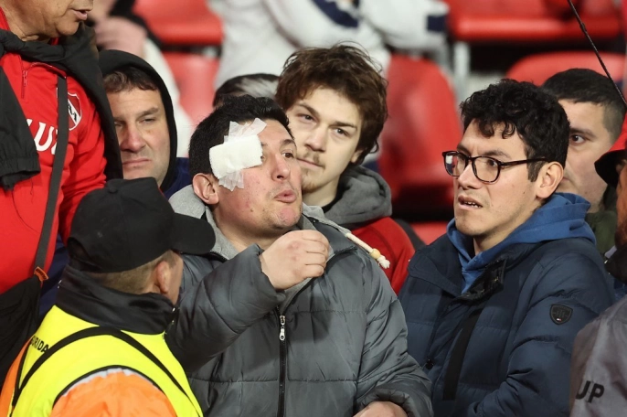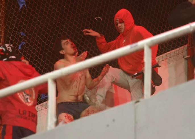 İlk yarı 1-1 tamamlanırken, tribünlerdeki gerilim giderek arttı ve taraftarlar arasında arbede yaşandı. Independiente taraftarları, rakip taraftarlara taş ve sopalar fırlattı, ardından telleri aşarak sahaya girdi. Universidad de Chile taraftarları karşılık vermeye çalışsa da, sayıca az oldukları için fiziksel saldırıya uğradılar. Birçok taraftar yaralandı, bazıları kanlar içinde baygınlık geçirdi.